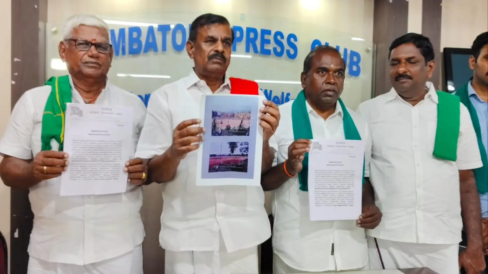 தமிழ்நாடு விவசாயிகள் சங்கத்தினர் கோவை பத்திரிக்கையாளர் மன்றத்தில் செய்தியாளர்களை சந்தித்தனர். அப்போது அச்சங்கத்தின் தலைவர் சு.பழனிச்சாமி பேசுகையில், "கோவையை சேர்ந்த விவசாயி கருப்பசாமி என்பவர் 10 ஏக்கர் நஞ்சை விவசாய நிலத்தை குத்தகைக்கு எடுத்து பணப் பயிர்கள் மற்றும் தென்னை மரங்களை வைத்து விவசாயம் செய்து வருகிறார். அவர் கடந்த சில தினங்களுக்கு முன்பு வருவாய்த் துறையினர் மற்றும் காவல் துறையினர் இணைந்து சட்டவிரோதமாக தனிநபர் ஒருவருக்கு சாதகமாக அந்த தென்னை மரங்களை வெட்டி சேதம் விளைவித்து விட்டார்கள். எனவே அந்த அதிகாரிகள் மீது கடுமையான நடவடிக்கை எடுக்க வேண்டும்.
