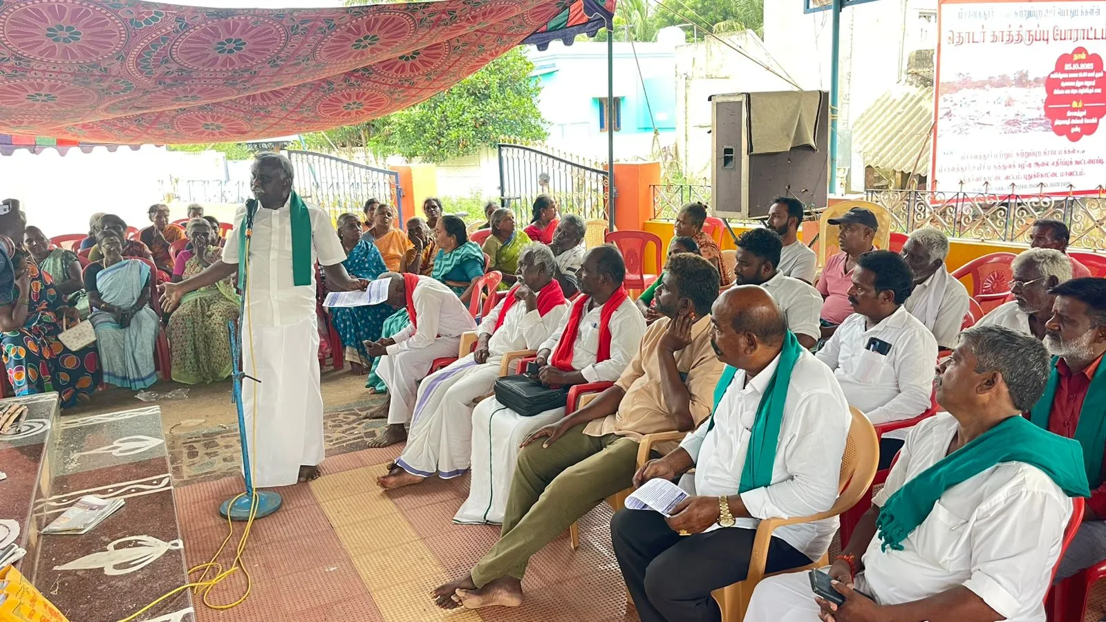 புதுக்கோட்டை மாவட்டம் கந்தர்வகோட்டை அருகே பிசானத்துர் கிராமத்தில் மருத்துவக் கழிவுகள் மறுசுழற்சி ஆலைக்கு எதிராக நடைபெறும் 4வது நாள் காத்திருப்பு போராட்டத்தில் பங்கேற்று தமிழ்நாடு அனைத்து விவசாயிகள் சங்கங்களின் ஒருங்கிணைப்பு குழு தலைவர் பி.ஆர் பாண்டியன் ஆதரவு தெரிவித்து உரையாற்றினார்.